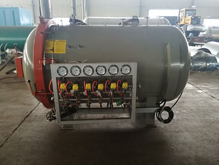在工作的過(guò)程中罐內(nèi)會(huì)有抽真空的步驟,一般來(lái)講該設(shè)備都是多路抽真空的,罐外可以看到有著一排的真空表進(jìn)行每一個(gè)管路進(jìn)行抽真空,我們?yōu)榱俗寜毫_(dá)到我們想要的結(jié)果還要對(duì)罐內(nèi)進(jìn)行加壓,壓力作用于制品上這樣就能更快的滲透和固化使得整個(gè)熱壓固化過(guò)程加速,一般來(lái)說(shuō)現(xiàn)在的熱壓罐都是高壓熱壓罐。
